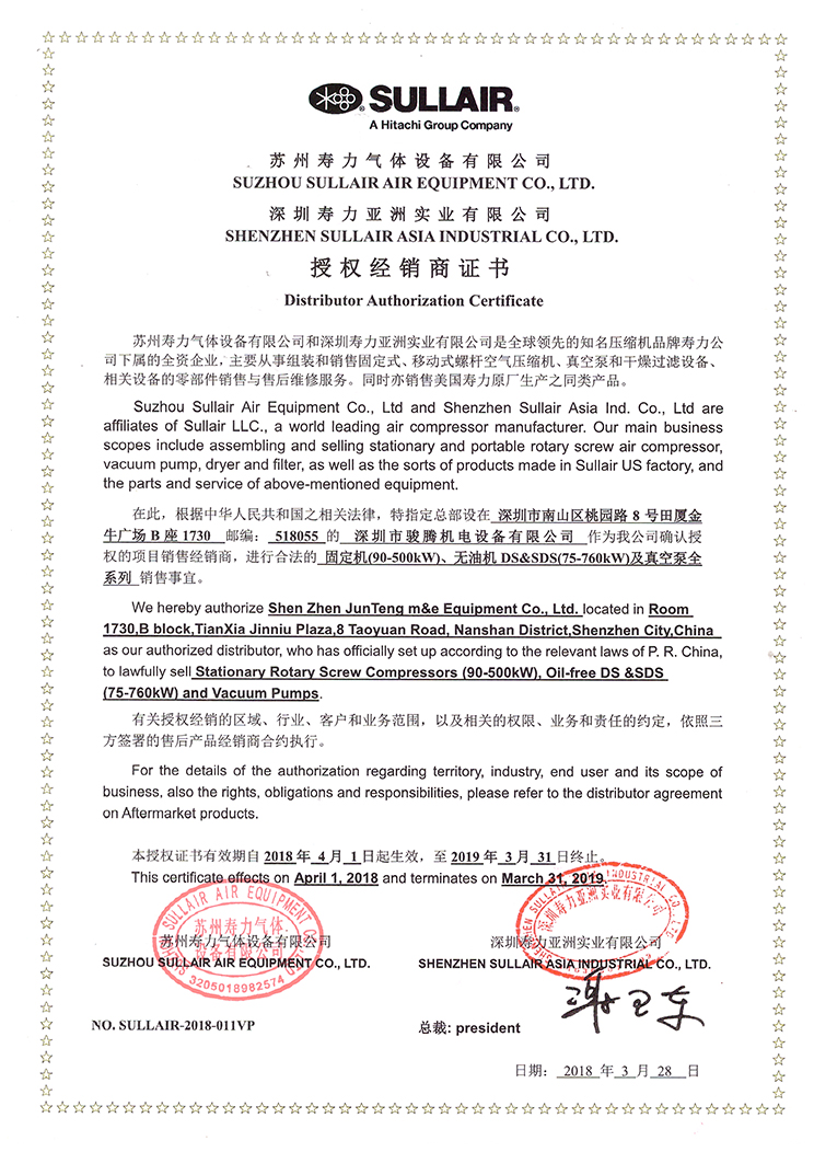 壽力授權(quán)證書(shū)2018